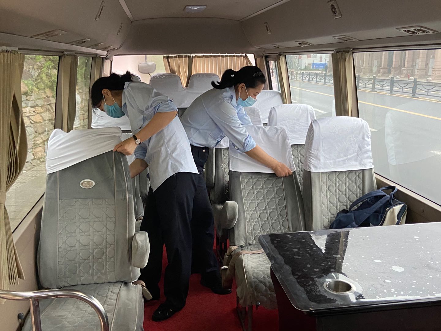 烈日似火,大地就像大蒸籠一樣,熱得使人喘不過(guò)氣來(lái)。炎炎烈日人人避之不及,城市動(dòng)車(chē)連云站的姑娘們卻毫不畏懼,她們利用自己休息的時(shí)間幫助城市動(dòng)車(chē)通勤車(chē)的曹師傅一起打掃車(chē)內衛生,清掃車(chē)內地面,擦拭車(chē)窗玻璃,將車(chē)上座位套一個(gè)個(gè)取下,仔細清洗干凈后再一個(gè)個(gè)套上去。曹師傅感謝姑娘們的幫忙,姑娘們笑著(zhù)說(shuō)“大家每日上班都要乘車(chē)近3個(gè)小時(shí),干凈衛生的車(chē)內環(huán)境,既能讓大家有一個(gè)舒適的乘車(chē)感受,又能讓大家每天都能有個(gè)好心情,大家以良好的精神狀態(tài)投入到一天的工作中去?!弊猿鞘袆?dòng)車(chē)開(kāi)通以來(lái),城市動(dòng)車(chē)的工作人員每日早上五點(diǎn)乘坐通勤車(chē)前往連云站,晚上等動(dòng)車(chē)結束后再乘坐通勤車(chē)返回海州,如果說(shuō)通勤車(chē)是工作人員臨時(shí)的家,每個(gè)座位就是大家的臨時(shí)床位,大家每日早出晚歸只能利用乘車(chē)這段時(shí)間給自己補補覺(jué)。