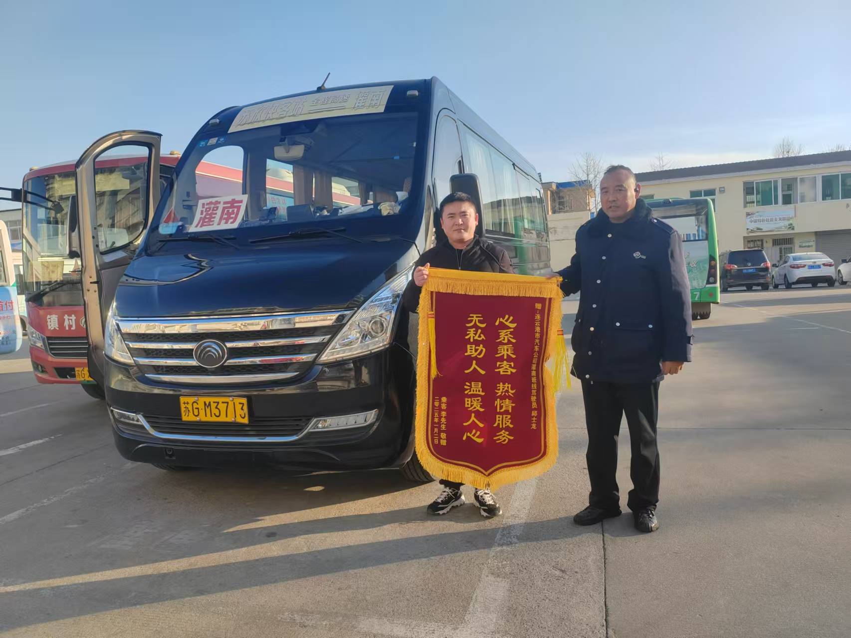 張女士的兒子李先生在得知母親乘車(chē)時(shí)受到邱士龍的悉心照顧后十分感動(dòng),特地定制了一面錦旗,上書(shū)“心系乘客,熱情服務(wù),無(wú)私助人,溫暖人心”,親自將錦旗送至連汽定制客運事業(yè)部,親手交給邱士龍,以表達他的感激之情。